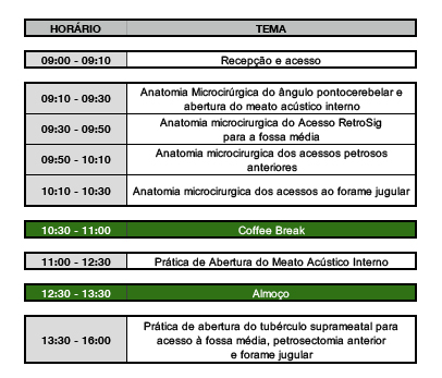 - Palestrantes renomados com vasta experiência em cirurgia de base de crânio.